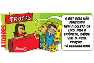 O dia 12 de janeiro, dia do aniversário de Belém, já está virando uma espécie de 1º de abril fora de época, pelo menos para o prefeito Zenaldo Coutinho. Este ano, nessa data, ele prometeu entregar até o final do semestre, ou seja, até ontem, 30 de junho, a tão sonhada conclusão do BRT. Mas o belenense teve de se contentar com mais um adiamento das eternas obras do projeto, sem uma data precisa para a entrega. E como se ainda não fosse o bastante, a Prefeitura ainda fez um acréscimo de quase R$ 7 milhões ao valor original do contrato, que hoje é de quase R$ 370 milhões. Para quem não se lembra, foi também num dia 12 de janeiro que Zenaldo prometeu revitalizar o Ver-o-Peso. É esperar para ver.