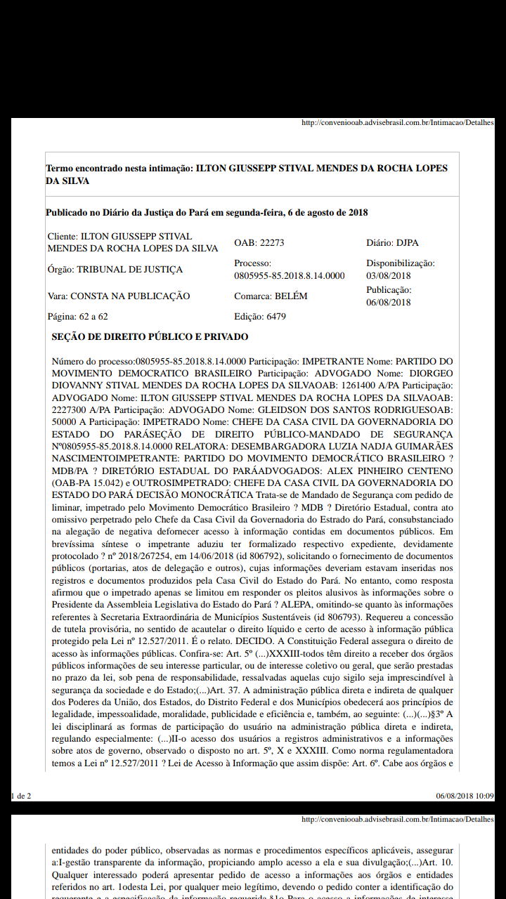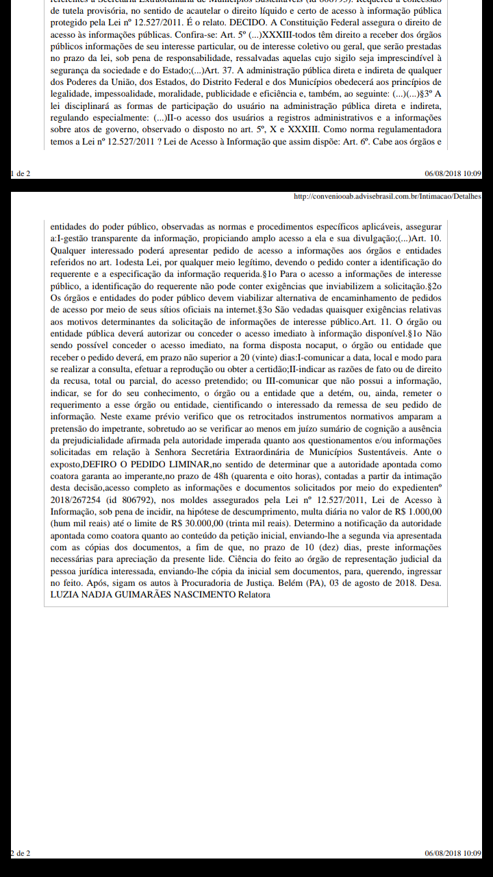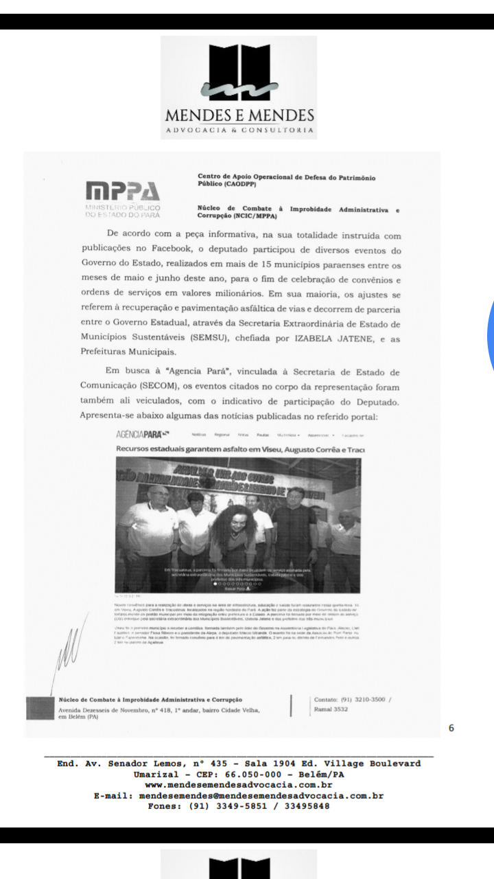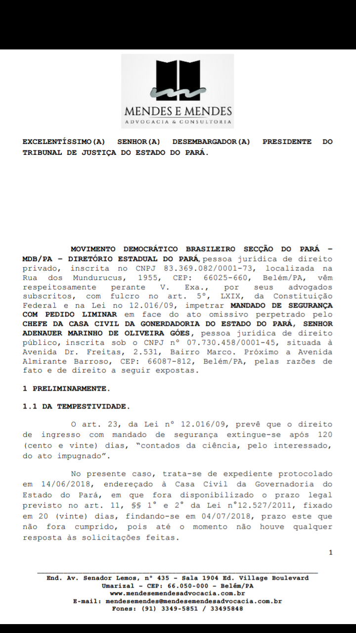 Hoje a desembargadora Luzia Nadja Guimarães Nascimento, concedeu Liminar em sede de Mandado de Segurança impetrado pelo MDB, através do Escritório Mendes e Mendes. Na decisão a Desembargadora determinou que a Casa Civil disponibilize as portarias que delegaram poderes a Izabela Jatene – Secretária do Município Sustentáveis para que representasse o governador nas assinaturas de vários convênios realizados no interior do estado em companhia do candidato Marcio Miranda.
