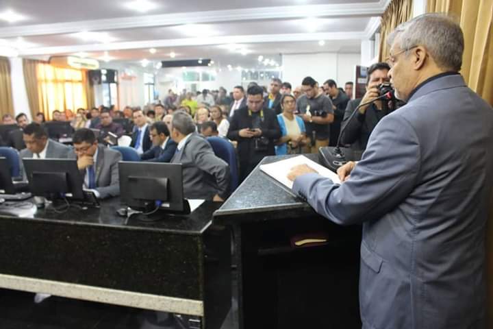 Com o plenário completamente lotado, o prefeito Manoel Pioneiro foi recebido com aplausos pelos presentes que acompanharam a solenidade. Em seu discurso, o prefeito deu as boas-vindas e parabenizou a nova gestão da Câmara. Manoel Pioneiro entregou aos parlamentares um livro contendo informações das ações executadas pelo governo no ano de 2018 e ressaltou ainda que Ananindeua vai receber grandes obras.