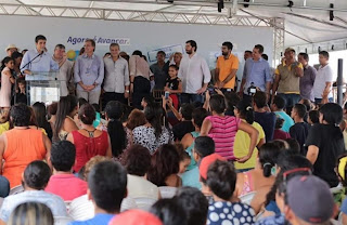 Na manhã desta segunda-feira, 29, o Governador eleito, Helder Barbalho, participou juntamente com o Prefeito de Ananindeua, Manoel Pioneiro e o Ministro das Cidades Alexandre Baldy, da cerimônia de entrega das chaves de mais 640 unidades habitacionais do programa Minha Casa, Minha Vida, em Ananindeua. São R$ 40 milhões de investimentos e mais de 2.500 pessoas que deixam aluguel para ter seu próprio lar, onde a partir de agora escreverão novas histórias.