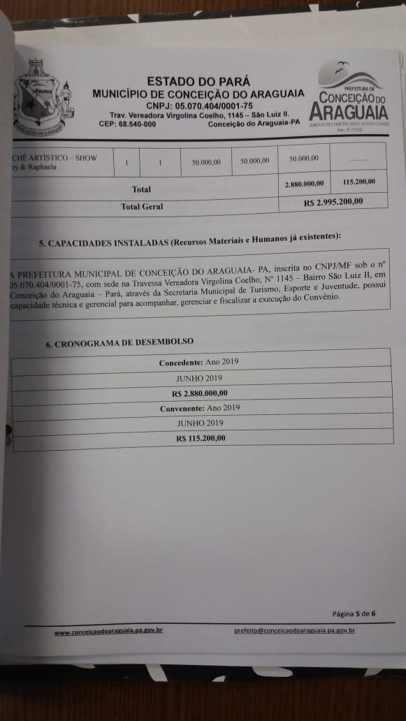 Em Conceição do Araguaia haverá shows de Wesley Safadão, Léo Magalhães e Bruno e Marrone para o evento Verão 2019 – Praia das Gaivotas. No ano passado o evento foi bancado pelo governo do estado. Nesse ano o evento acontecerá graças ao repasse parlamentar de emendas, em sua totalidade, provenientes de emendas dos deputados Fábio Freitas, Ozório Juvenil, Chamonzinho. Renilce Nicodemos, Miro Sanova, o que representa um montante de R$ 2.880.000,00 para toda a realização do tradicional evento a cidade. Portanto não há recursos direto da Fundação Cultural do Pará, sendo que os parlamentares destinam na sua cota o orçamento e dizem como esse dinheiro deve ser aplicado, como aliás rege a lei. O evento movimenta toda a região de Conceição, e ocorre entre os dias seis de julho a dois de agosto, e é uma promoção da Prefeitura Municipal. A prefeitura de Conceição entra com uma contrapartida. Já a Fundação apenas como repassadoras das emendas.