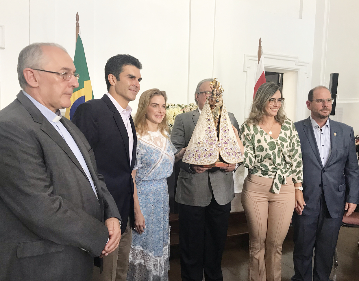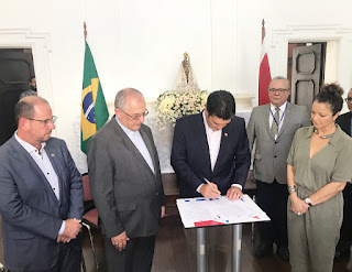 O governador Helder Barbalho e o Vice-governador Lúcio Vale assinam, neste momento, o repasse de R$ 1,1 milhão ao Círio de Nazaré 2019. O ato ocorre na Capela do Palácio Lauro Sodré, em Belém. A contrapartida do Estado irá apoiar as ações da festividade nazarena e viabilizar, não só os preparativos para as 12 procissões, mas diversas atividades, como a realização do Círio Musical, o acolhimento e alimentação dos romeiros e voluntários na Casa de Plácido, e a impressão de materiais, como livros de peregrinação, banners e cartazes. Parte do recurso será distribuído ainda para as obras sociais da igreja, creches e pastorais.