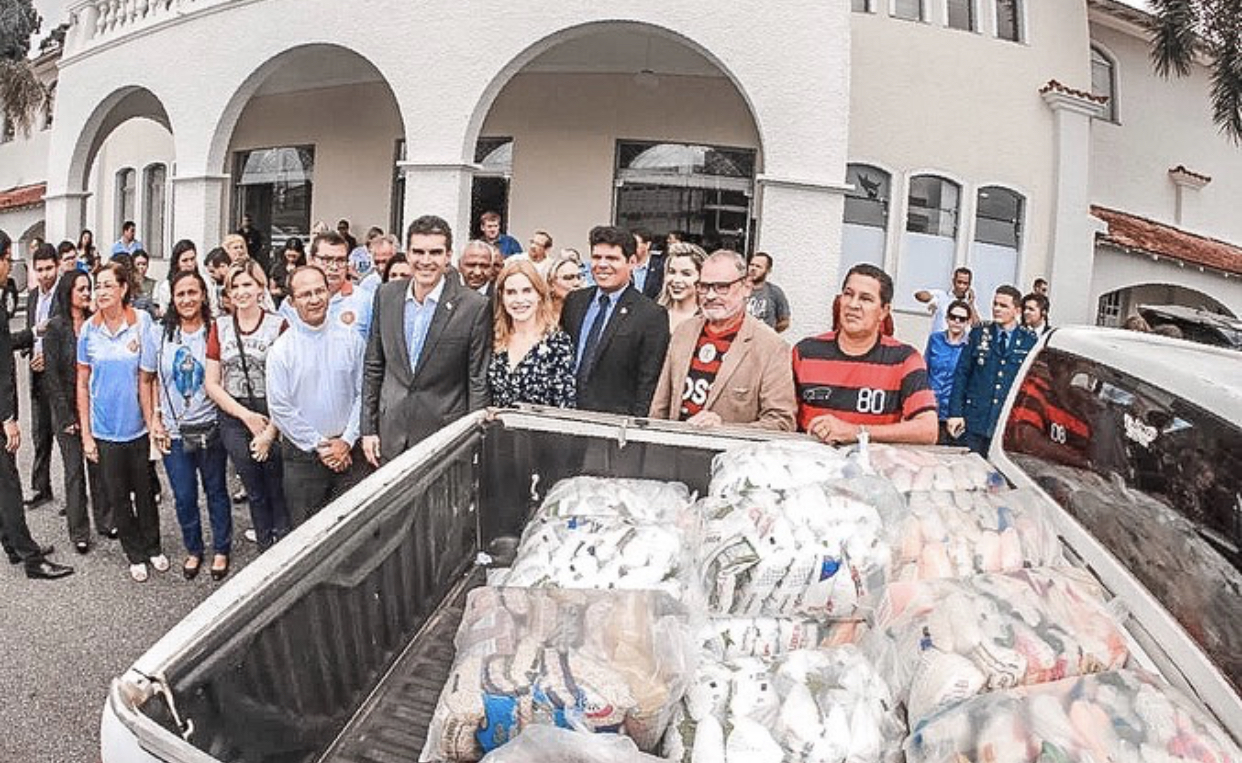 O governador do Estado, Helder Barbalho, juntamente com a primeira dama, Daniela Barbalho, fizeram a entrega de seis toneladas de alimentos não perecíveis, nesta quarta-feira (4), durante uma cerimônia no Salão de Atos do Palácio do Governo, em Belém. Os itens serão doados para 12 instituições carentes.