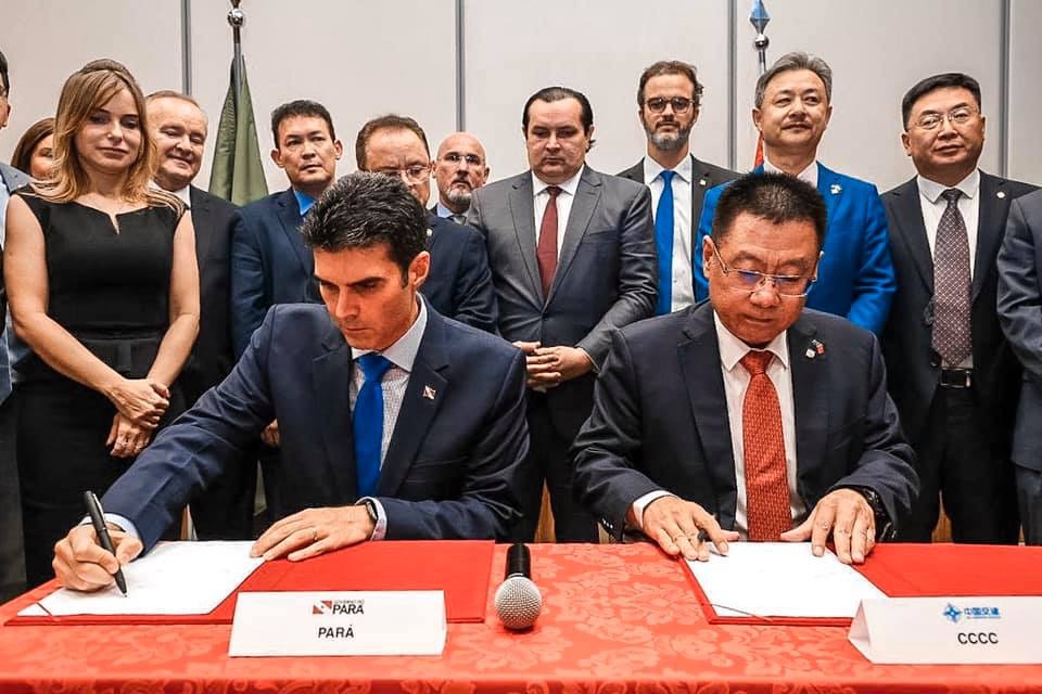 O Governador Helder Barbalho está em Brasília, onde assinou ainda pouco o protocolo de intenções com a empresa China Communication Constrution Company (CCCCSA). Onde irão buscar estratégias econômicas para implantação de projeto ferroviário, com investimento de 7 bilhões, entre os municípios de Marabá e Barcarena. “Esse é um interesse mútuo, que visa gerar mais desenvolvimento, emprego, benefício à economia, redução no custo dos transportes e praticidade na locomoção. É mais desenvolvimento para o Pará e para o Brasil.”, disse Helder.