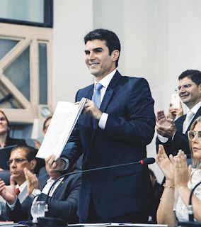 O governador eleito do Pará, Helder Barbalho e o seu vice, Lúcio Vale, tomam posse oficialmente durante cerimônia realizada agora pela manhã (1º) no plenário da Assembleia Legislativa do Pará (Alepa) em Belém.