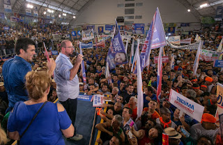 Uma multidão recebeu o candidato ao governo, Helder Barbalho do MDB e Lúcio Vale à vice-governador, na grande convenção partidária que aconteceu no Ginásio do Sesi, em Belém. Onde na ocasião, foram lançados os candidatos ao senado, deputados federais e estaduais.