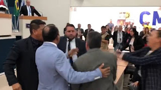 Os aliados de Zenaldo como sempre exaltados, partiram para o bate-boca e criaram maior confusão, foram momentos de tensão na Câmara, durante o dia da tribuna livre, espaço aberto para a população. Os ânimos ficaram exaltados. Um vídeo que o Blog teve acesso mostra o momento em que o vereador Fernando Carneiro é agredido com um empurrão pelo vereador líder do governo, Gleyson Oliveira, no plenário da CMB.