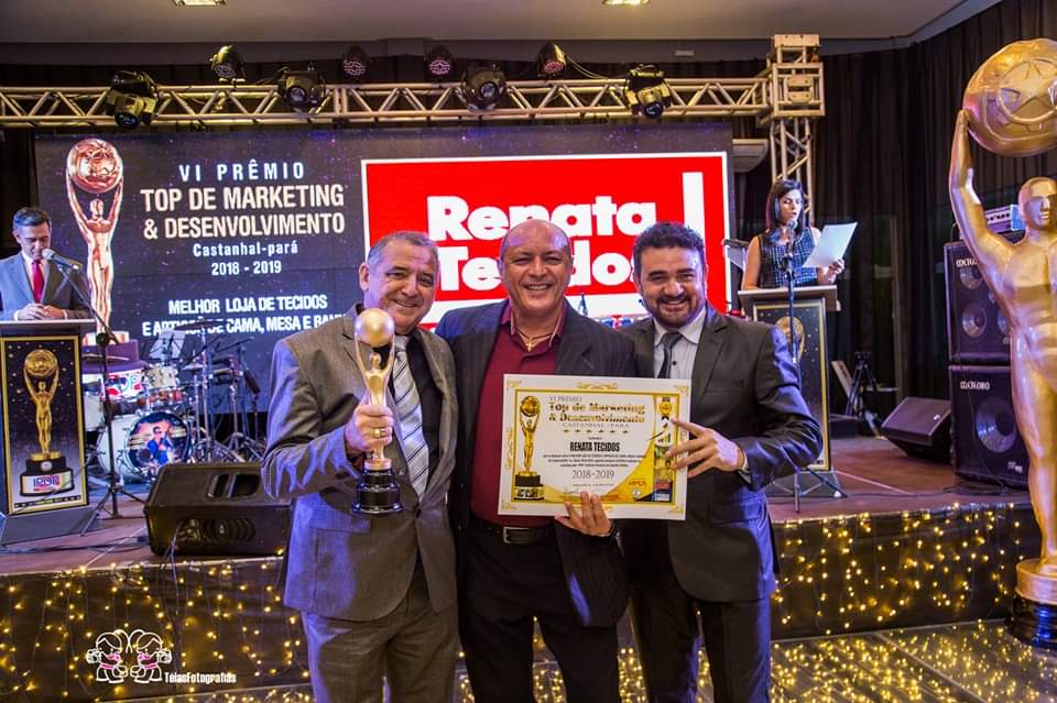 O Grupo Renata Tecidos conquista mais uma vez, em Castanhal, o Prêmio “Top de Marketing e Desenvolvimento” na categoria Loja de Tecidos e Artigos de Cama, Mesa e Banho. A premiação ocorreu na última sexta feira (10) e foi representada pelo Sócio – Proprietário Dorival Ferreira e Diretor de Mídia Alaizio Pinto.