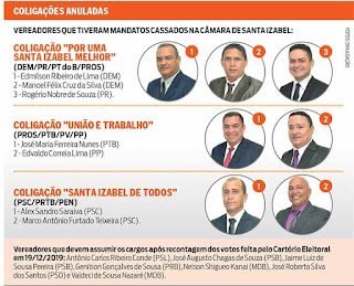 No dia 11 de dezembro 2019 o TRE-PA cassou o registro das três coligações que continham os sete vereadores. No dia 20 de dezembro o Tribunal Superior Eleitoral (TSE) concedeu liminar mantendo os vereadores no cargo até o julgamento do mérito dos embargos, o que ocorreu na sessão plena de ontem do TRE-PA, que manteve a cassação dos vereadorese das coligações.