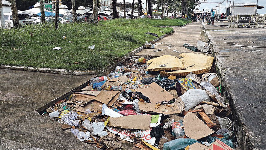 O descaso pode ser visto em todos os setores da feira. Do estacionamento à famosa pedra, onde é comercializado o pescado que abastece Belém, a quantidade de sujeira é assustadora. Pessoas em situação de rua fazem suas refeições e necessidades diárias em meio aos passageiros que embarcam nos dois terminais hidroviários com viagens para o município de Barcarena.